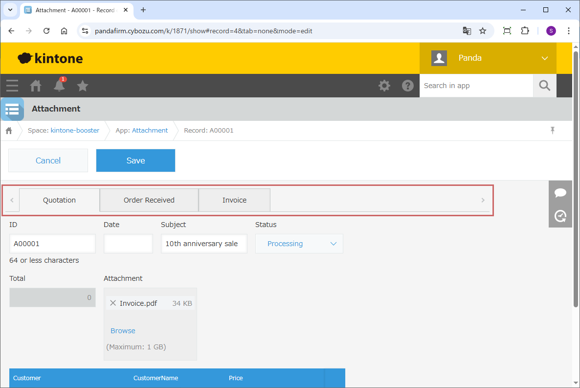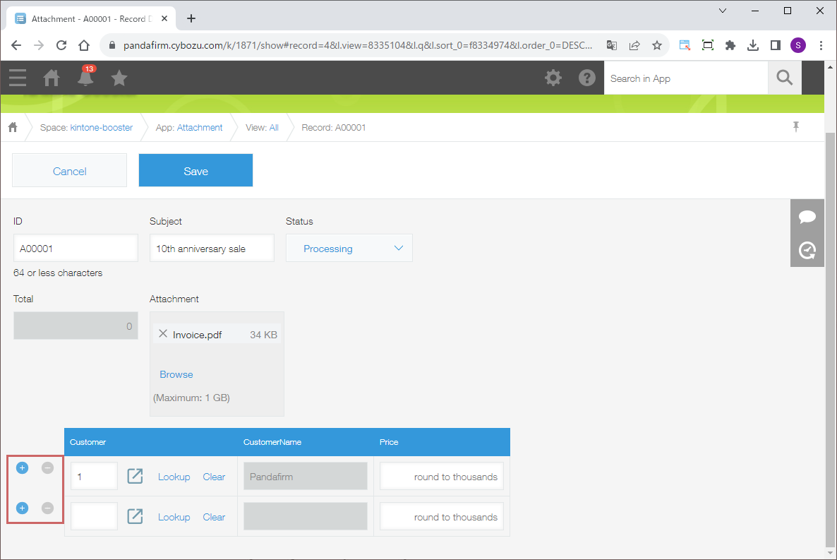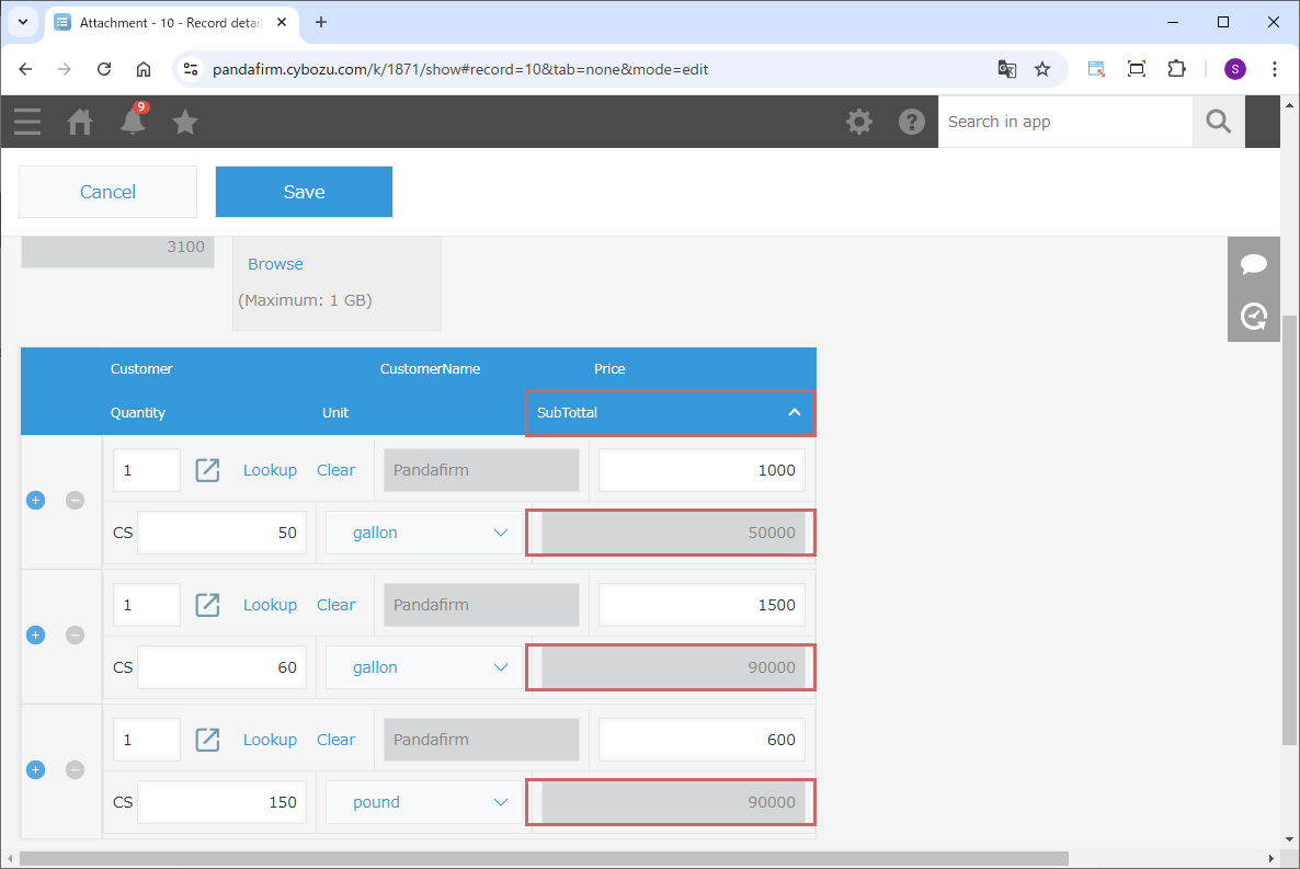 If Table Sorting is used and the table contains attachments, the record will be updated again after saving to correct the position of the attachments.