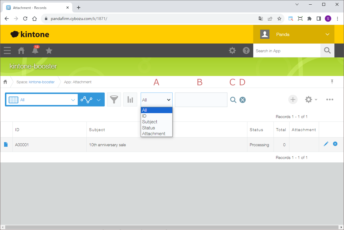 Execute the filtering of records. It will be executed in the same way immediately after you finish entering keywords. |