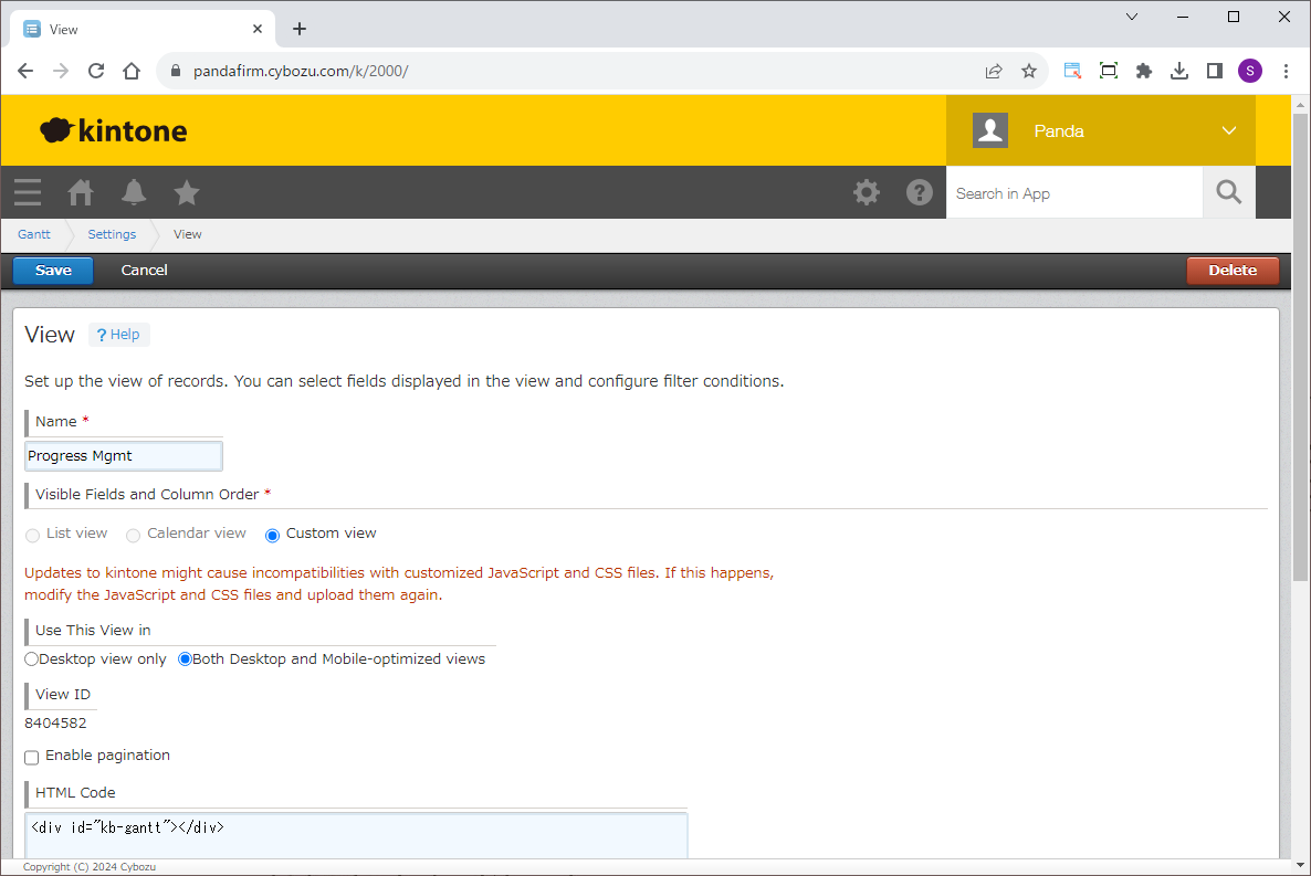When you display the list of custom formats specified in the settings screen, the gantt will be displayed.