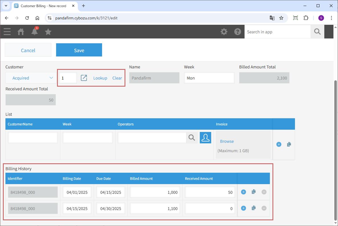 It also allows you to copy multiple records from the source app into a table, and to dynamically narrow down the lookup conditions based on field values from the source app.