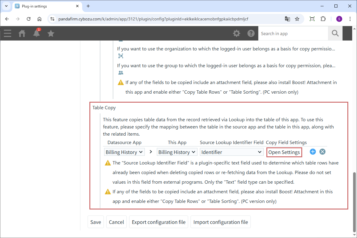 To use this feature, you need to add a Text field (Source Lookup Identifier Field) in the table. This field is used to determine which rows have already been copied when deleting copied table rows or re-fetching lookup values.