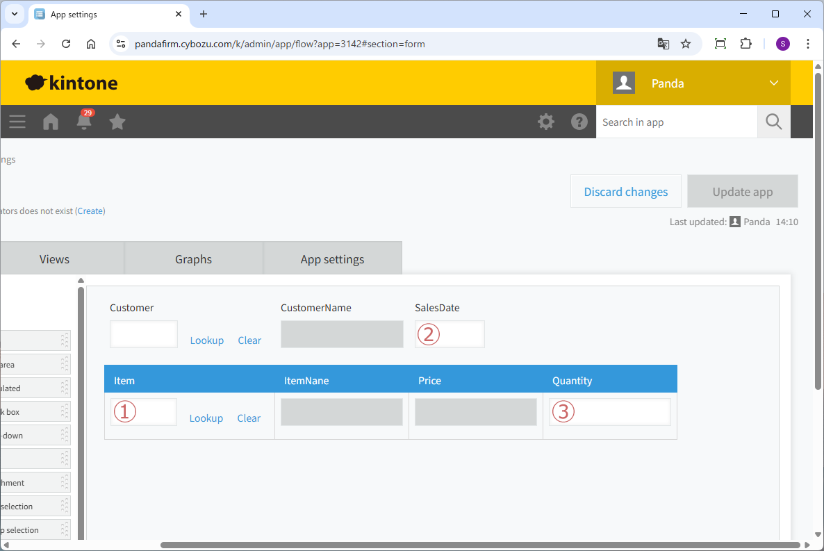 After placing the fields, be sure to click the "Update App" button to confirm the changes.