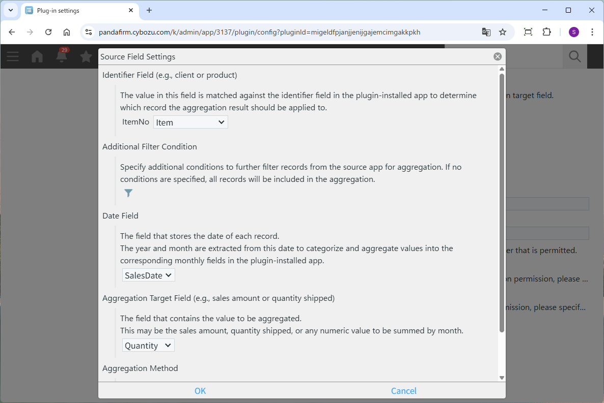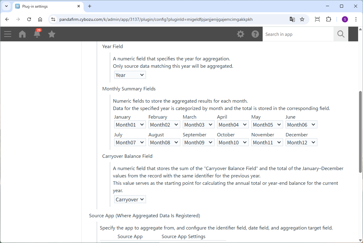 Next, we will explain the fields that need to be placed in the "Source App" for aggregation.