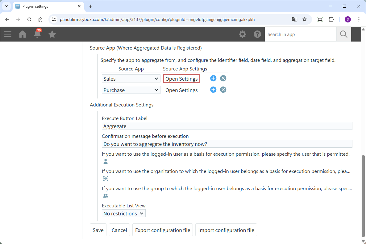 Once the preparation is complete, open the plugin settings screen, specify each field according to the displayed contents, and make additional specifications regarding the plugin execution button.