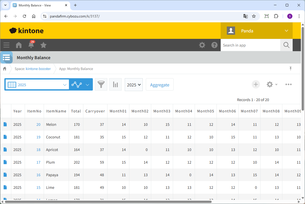 This is a plugin that generates a record in which monthly totals (such as inventory or accounts receivable) by customer or product for a specified year are stored in fields for January to December.