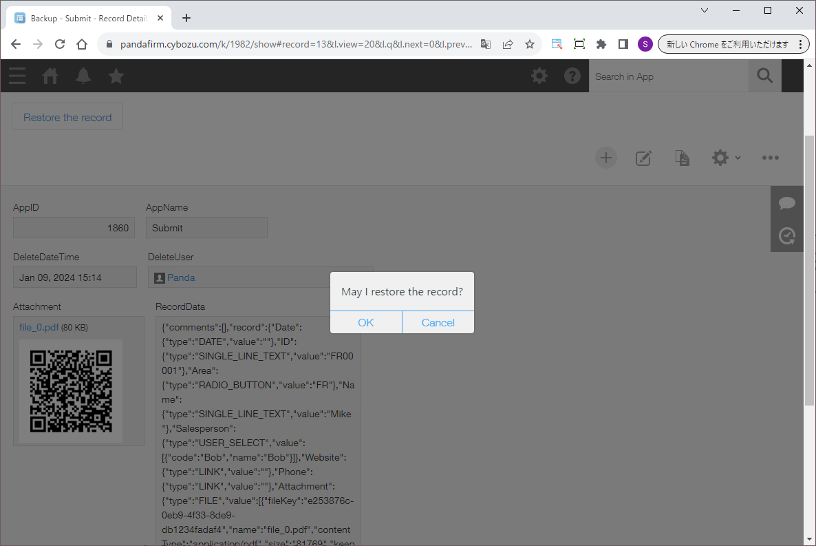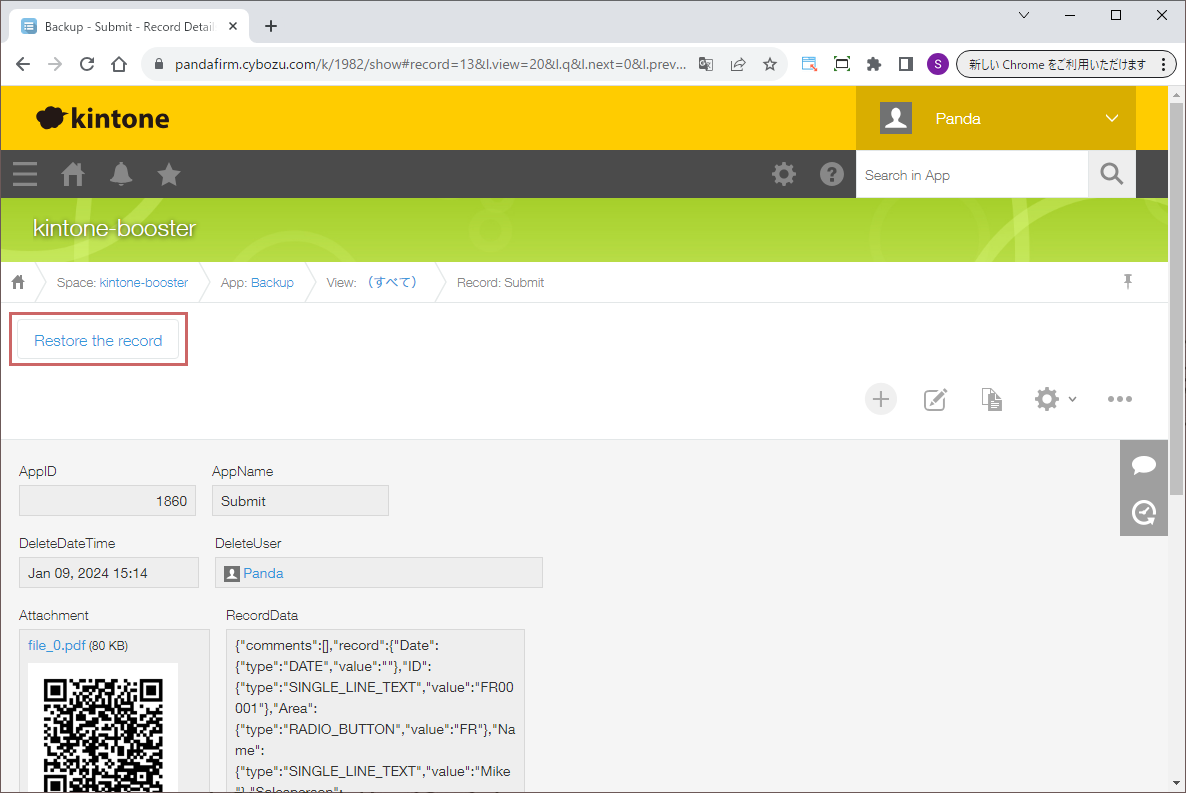 When you open the detail page of the record you want to restore, a restore button will be displayed.