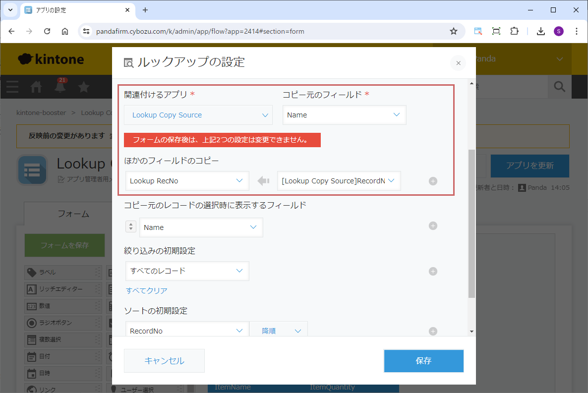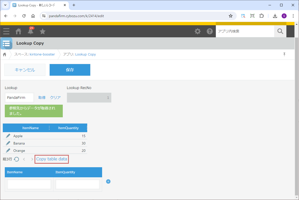 このページでは、ルックアップデータ取得後に、テーブルデータをコピーする一例をご紹介します。