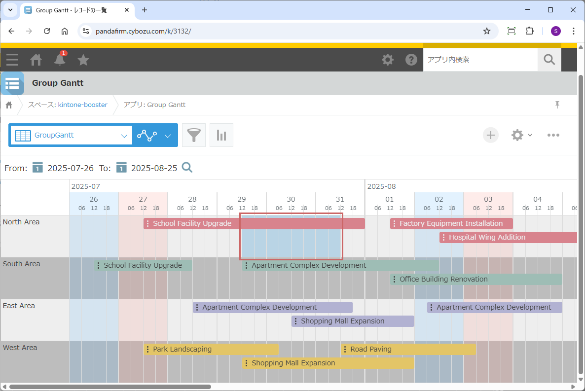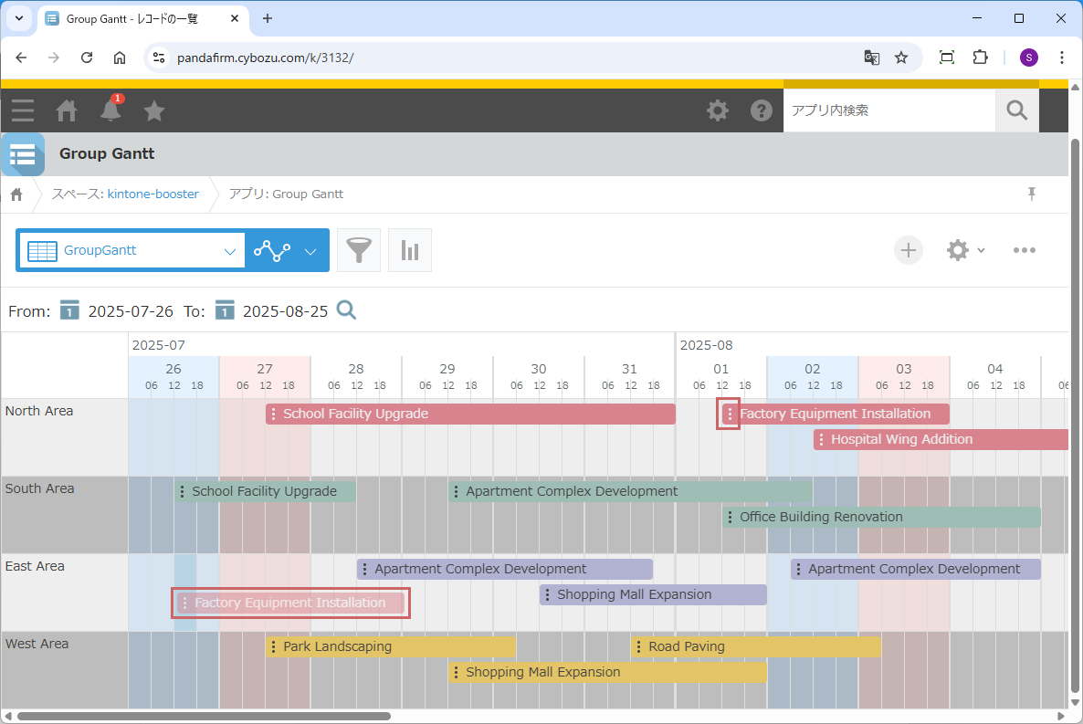 条件ごとにグループ化されたガントチャートビューを作成するプラグインです