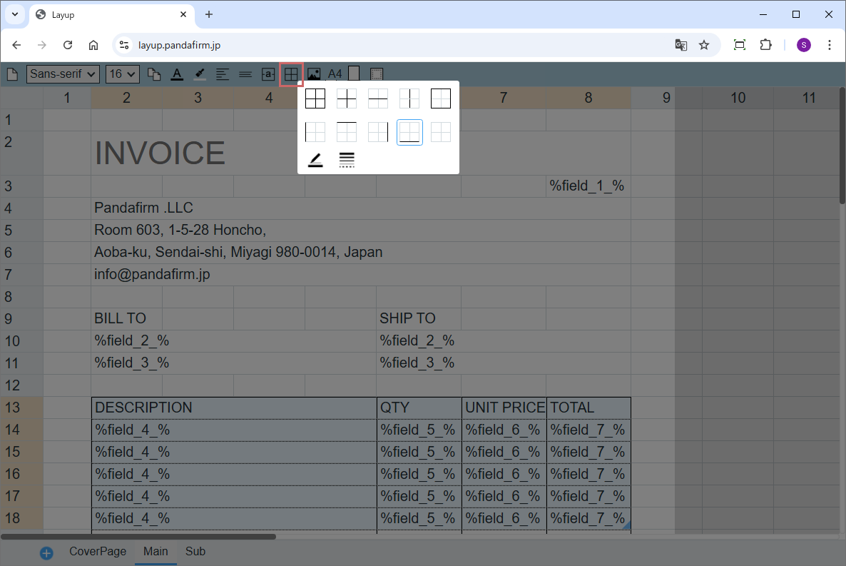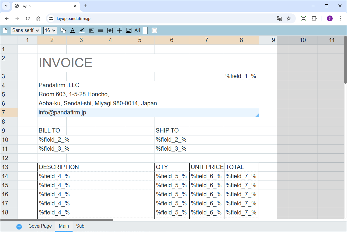 「Layup」は、ブラウザ上で帳票を自由にレイアウトできるツールです。エクセルに近い操作感で、印刷用の帳票やドキュメントを手軽にデザインできます。