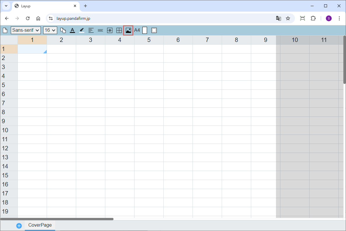 シート上への画像の配置はツールバーの画像ボタンから行います。