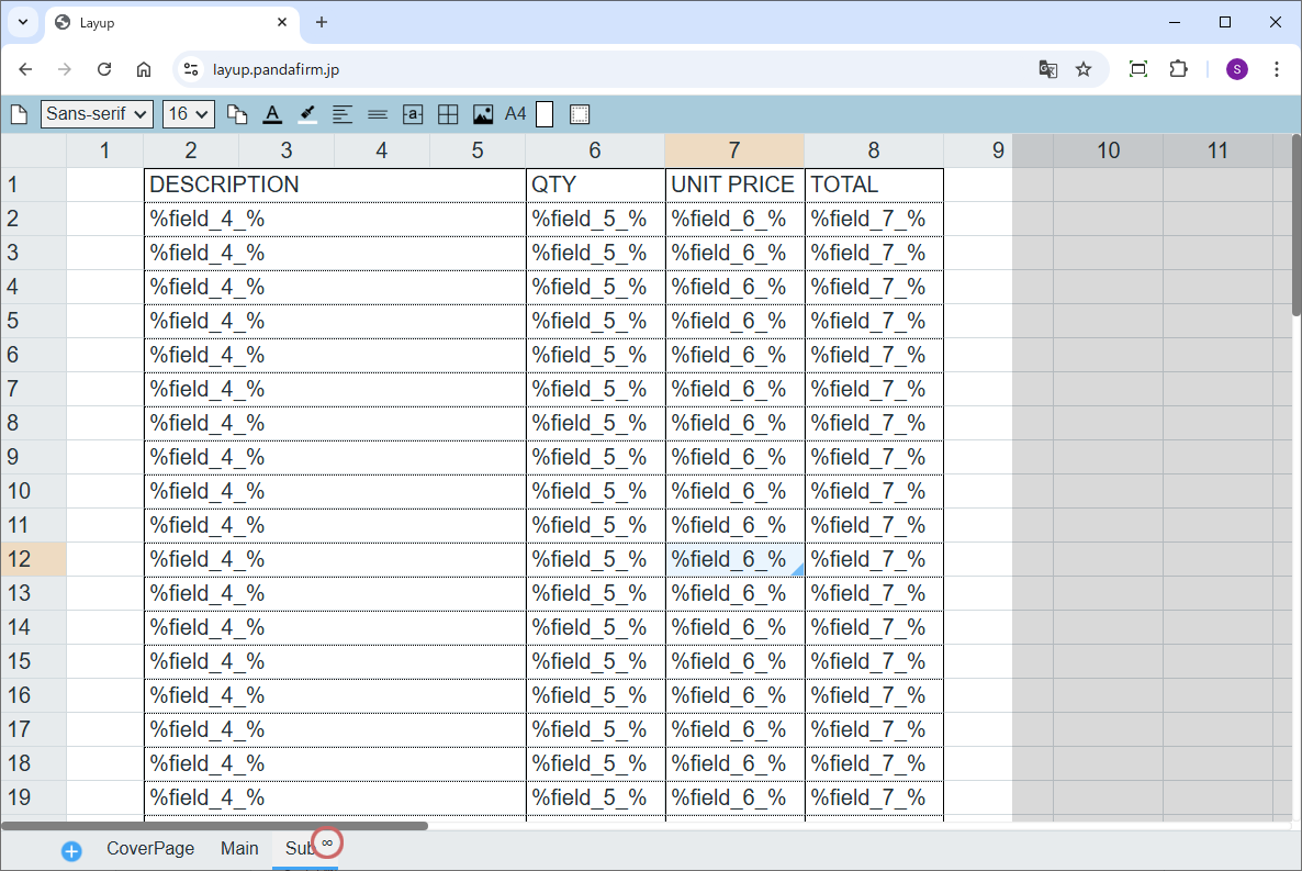「Repeat」が設定されたシートは、テーブル内フィールドの印字が終了するまで、そのシートをコピーしながら印字を続けます。
