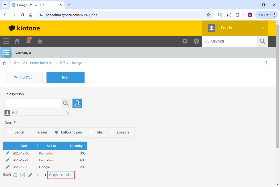 参照したレコードをテーブルにコピーする場合は、追加の設定がありますので、ご注意ください。