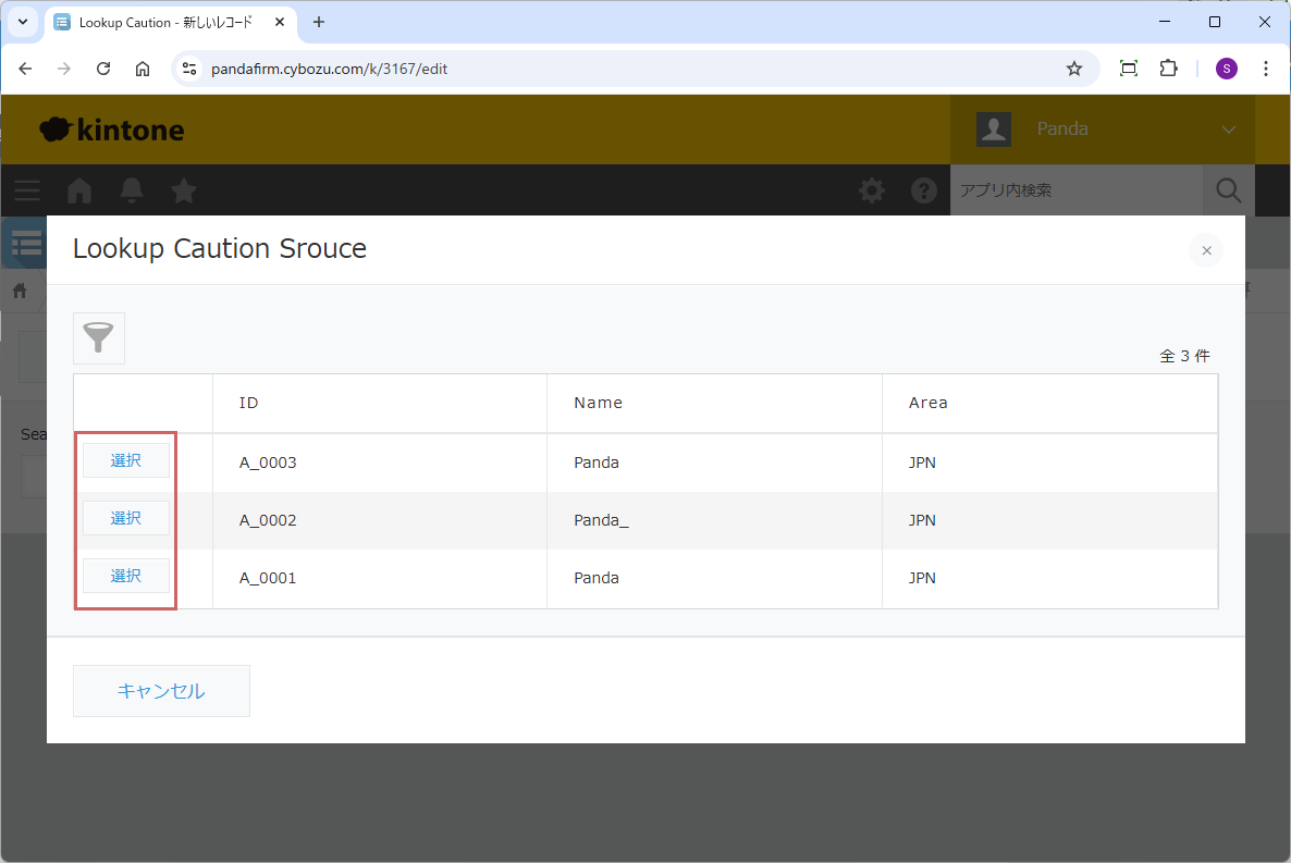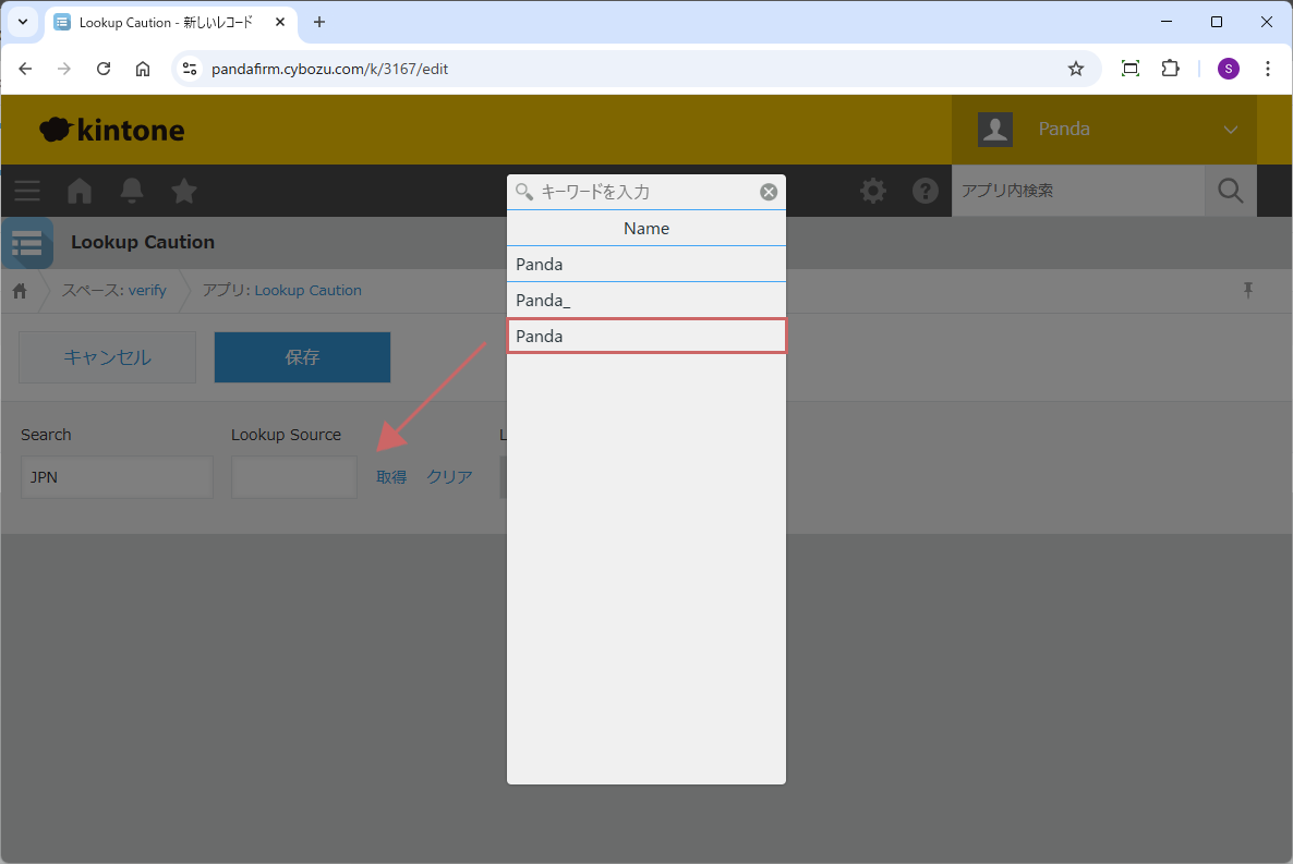もし、入力した値に一致するレコードが参照元アプリに複数存在する場合、kintoneは「どのレコードをコピーすべきか」を判断できません。その結果、以下のような挙動が発生します。