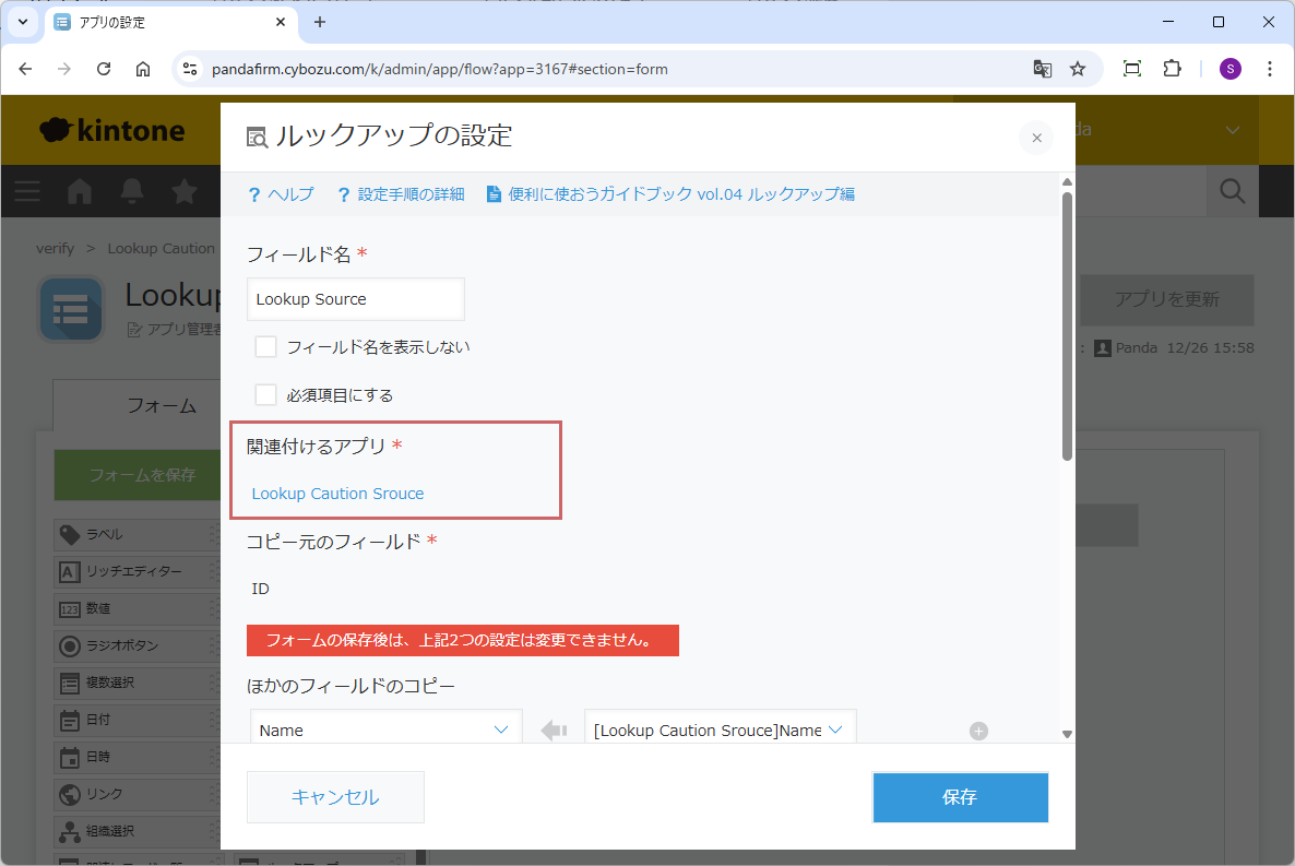 プラグインやカスタムJavaScriptでルックアップレコードを選択したはずなのに、再びレコード選択画面が表示される。