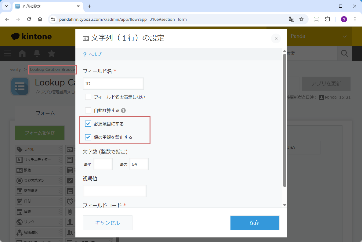 レコードの追加や更新を行おうとしたら、「値の重複が禁止されていない」というエラーが出たが、どのフィールドの設定を変更すればよいのか分からない。