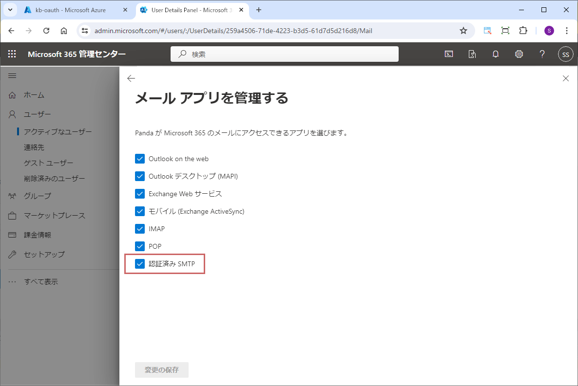 対象ユーザーのSMTP許可