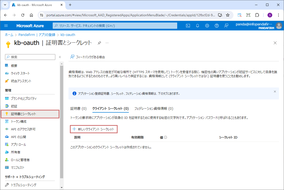 クライアントシークレットの取得