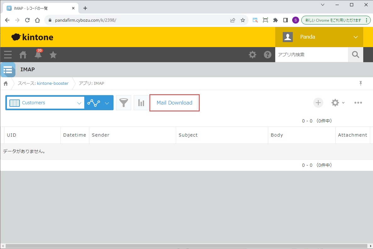 OKボタンをクリックすると、メールがダウンロードされます。