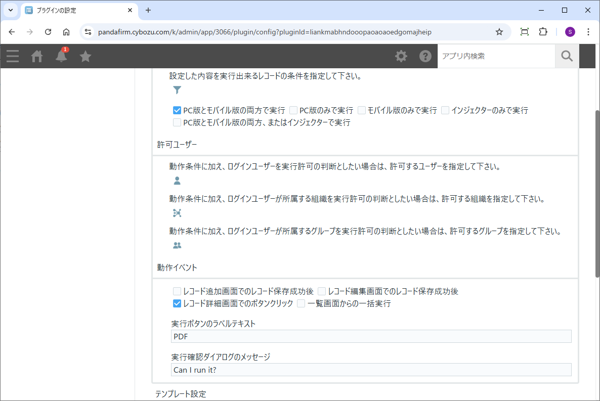 設定画面で指定したイベントにおいて、さらに指定した条件に合致すると、PDFが生成されます。