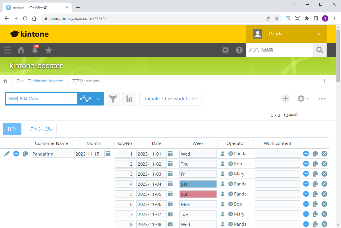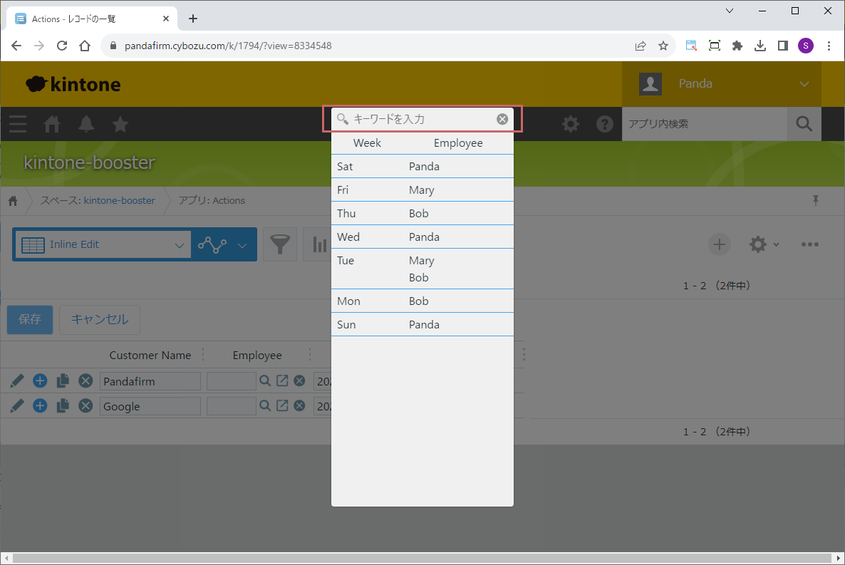 設定画面で指定した表形式のビューを表示するとプラグインが実行されます。
