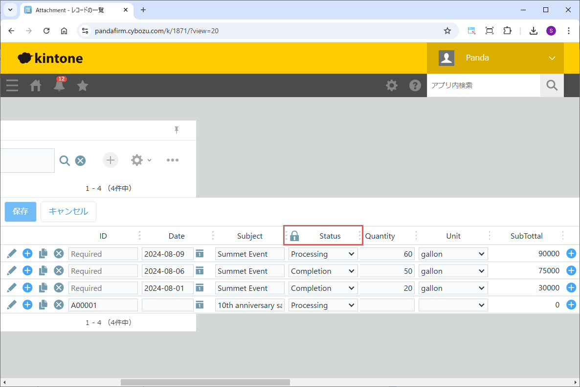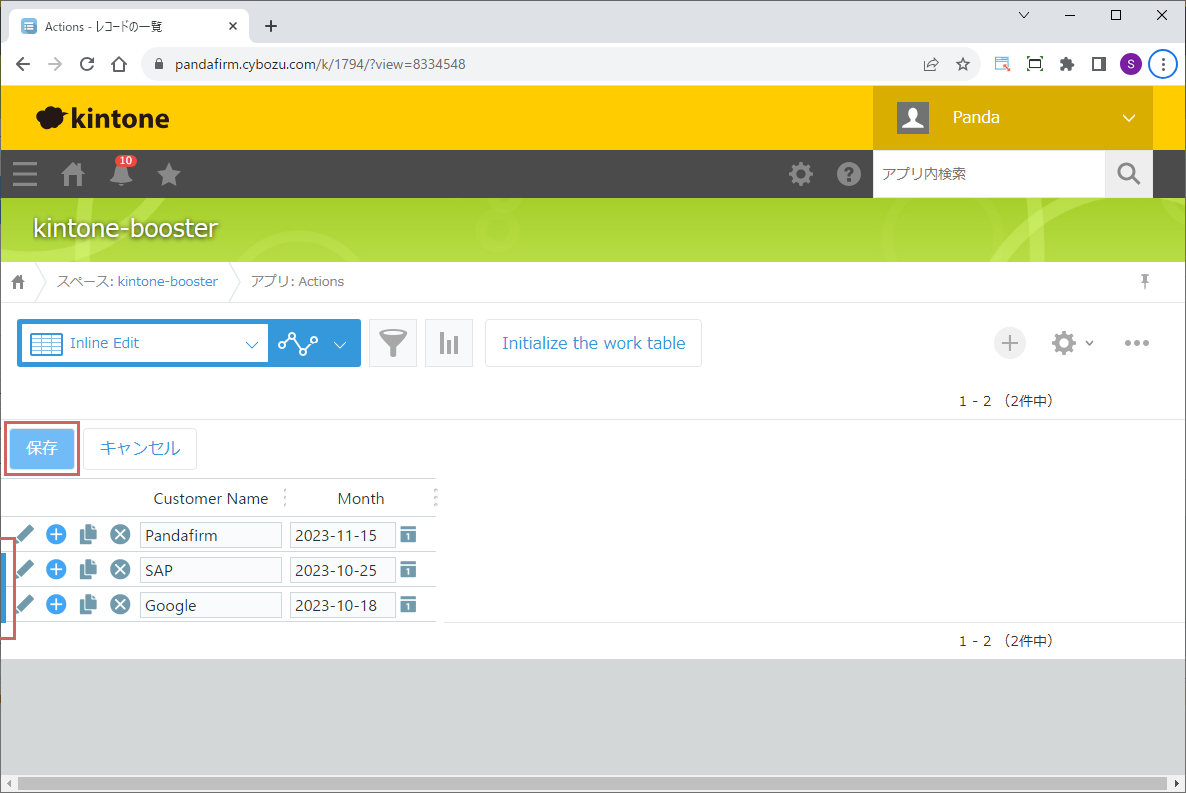 編集モードでは、レコードを追加したり編集を行うと青くハイライトされ、保存はそれらのレコードを対象として行われます。