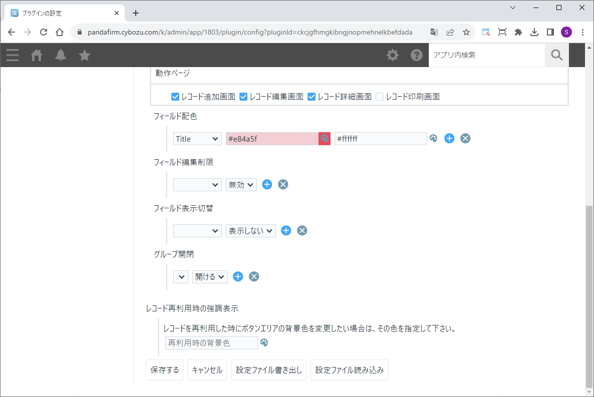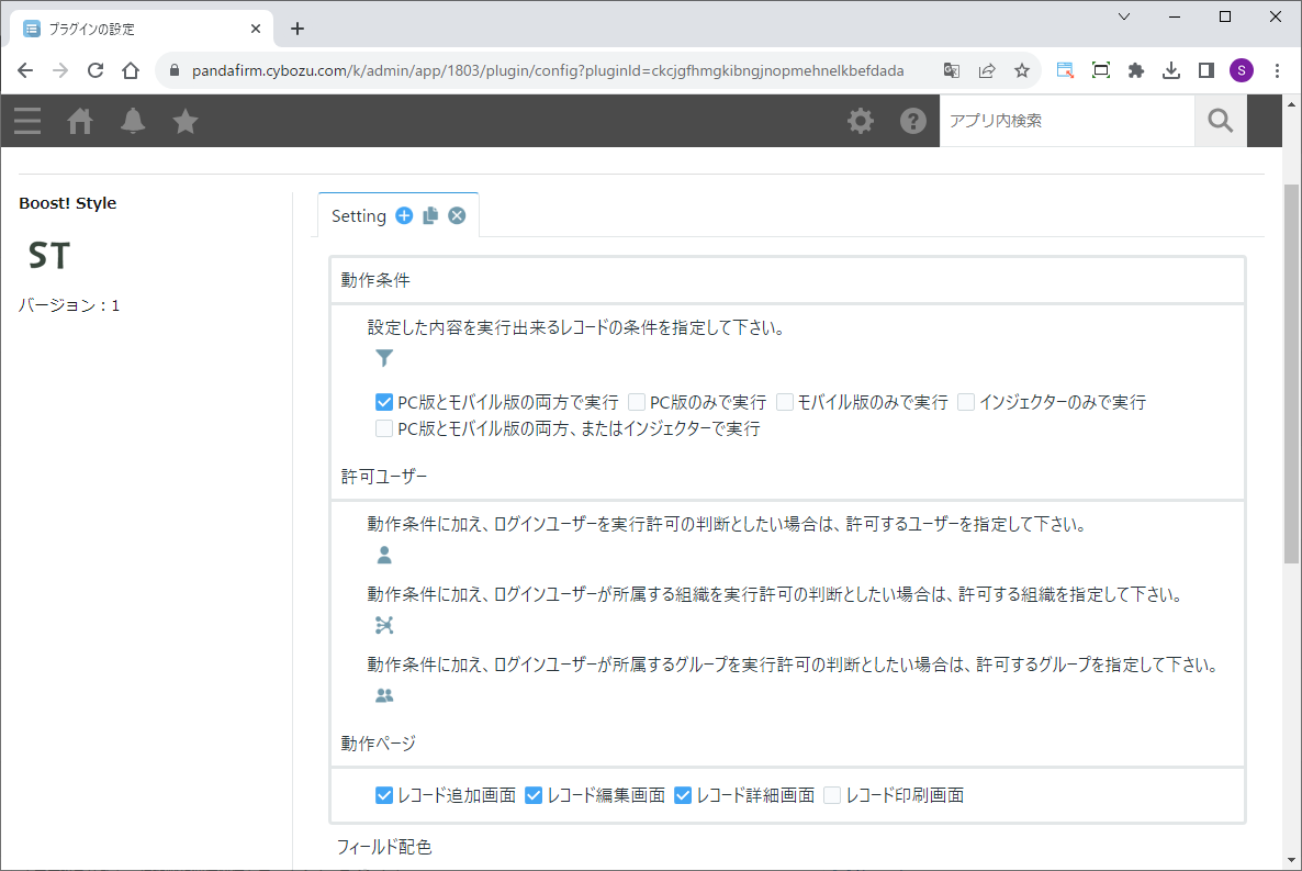 指定した条件に合わせて、フィールド要素の背景色を変更したり、フィールドの表示切り替え等を行うプラグインです。