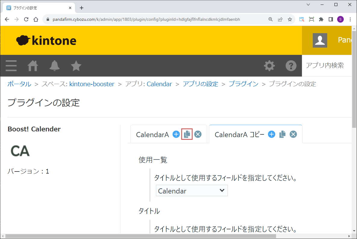 設定をコピーしたい時は、タブ内のコピーボタンをクリックします。