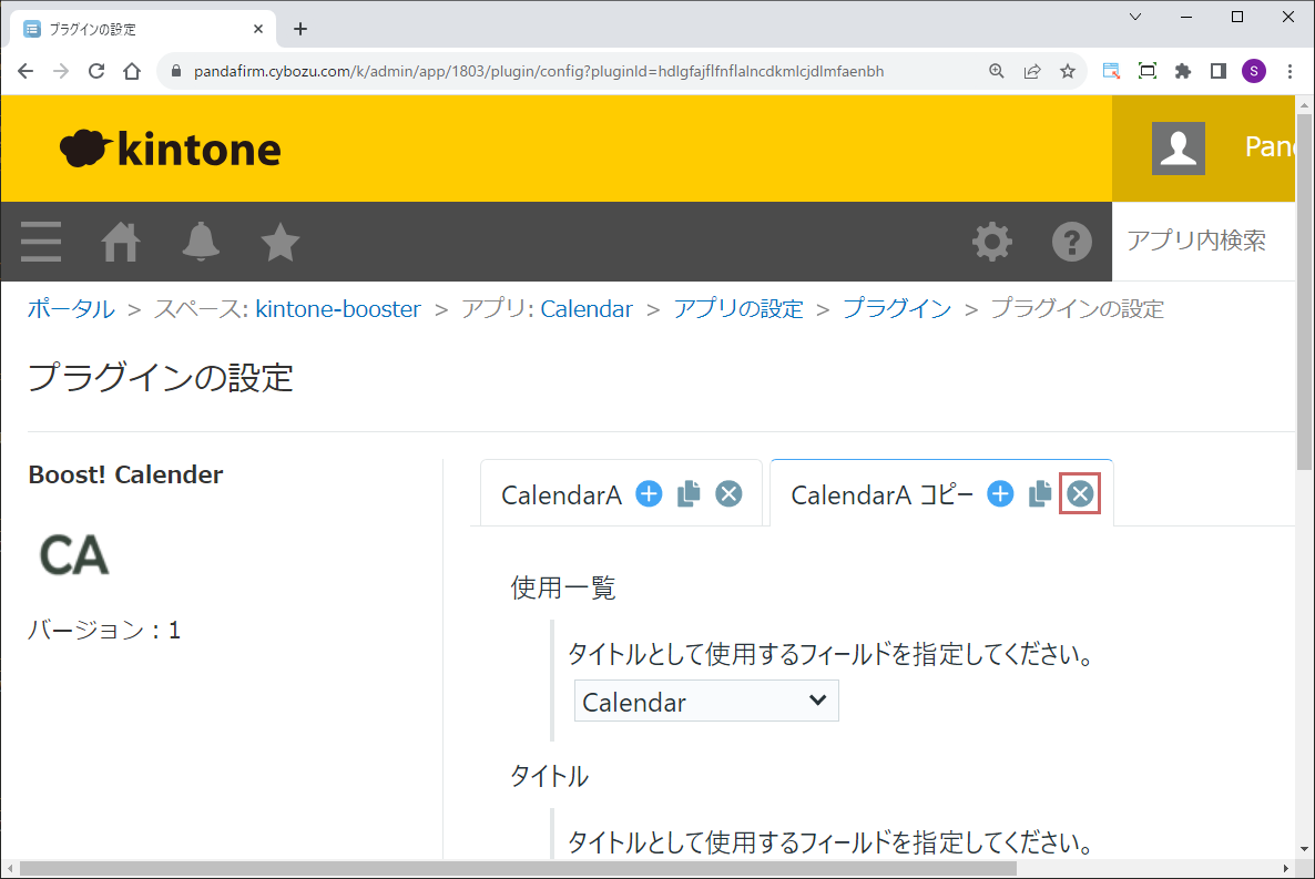 設定を削除したい時は、タブ内の削除ボタンをクリックします。