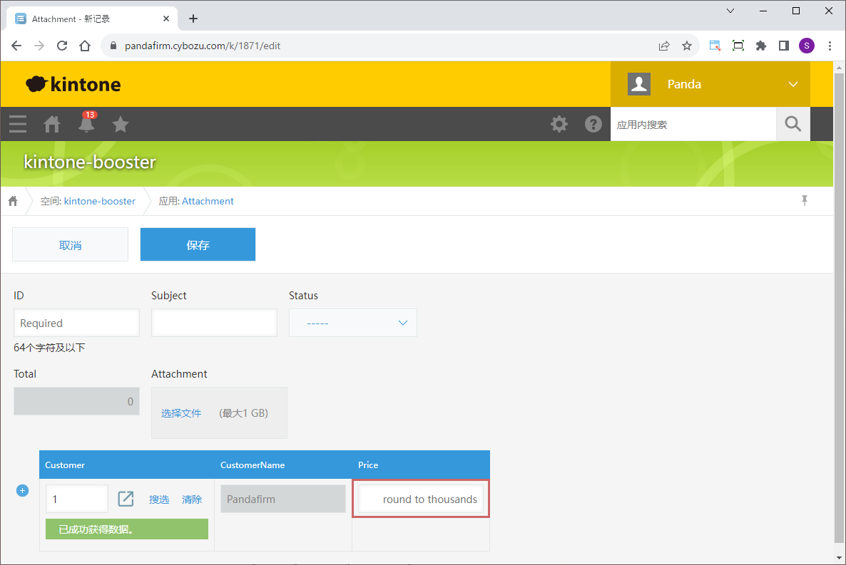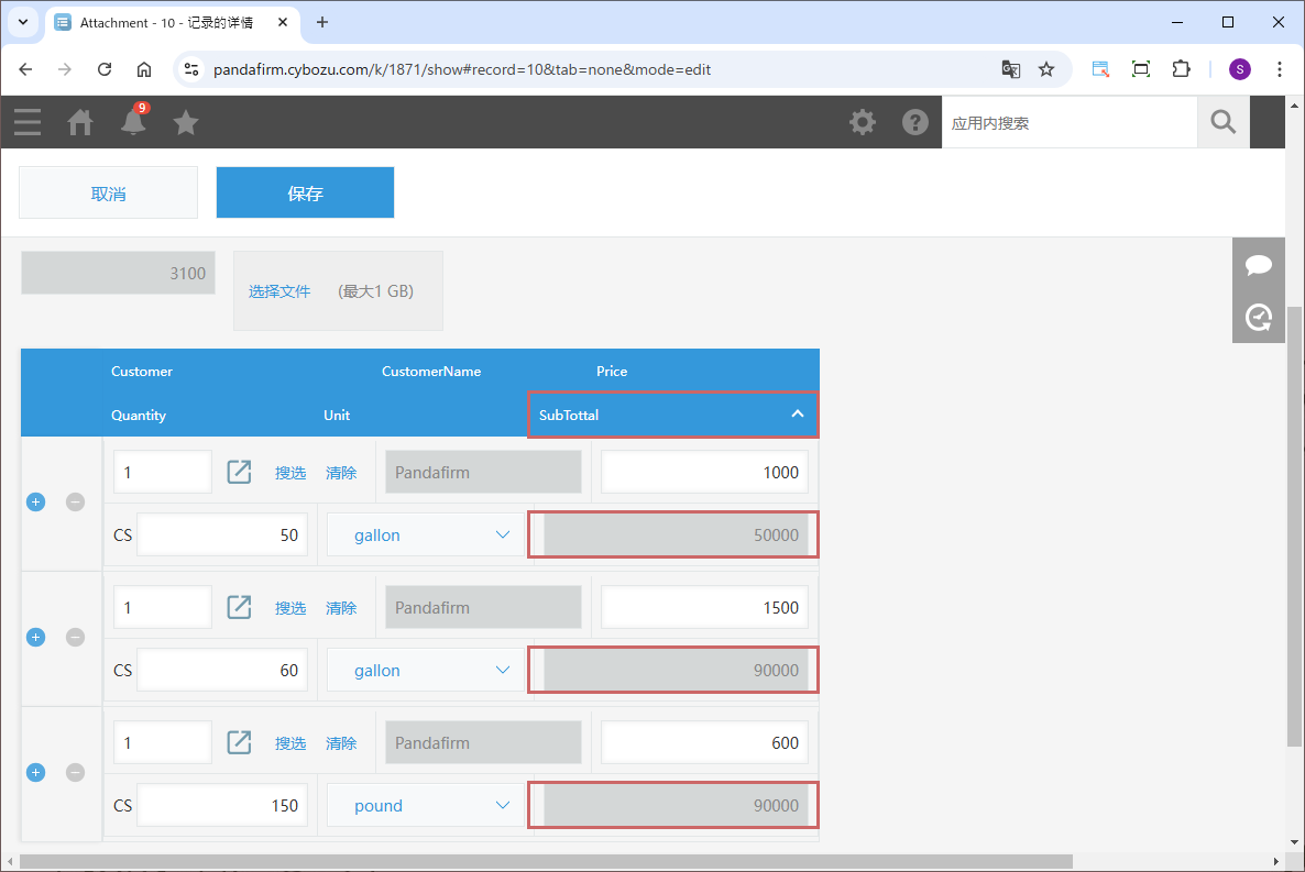 如果使用“表格排序”,并且表格中包含附件,系统将在保存记录后再次更新,以修正附件的位置。
