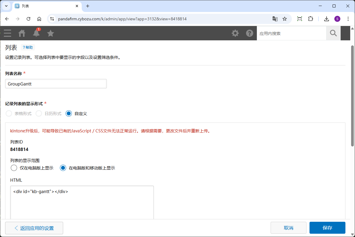 当您在设置屏幕中指定的自定义格式列表显示时,甘特图将显示出来。