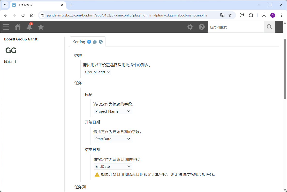 如果结束日期指定为计算字段等不可编辑字段,则结束日期的调整将被禁用。