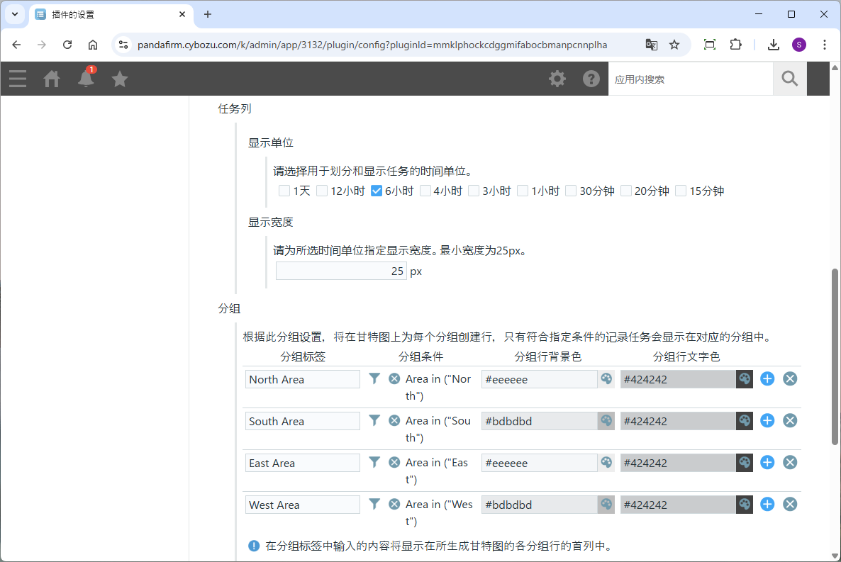 接下来,打开插件设置界面,并根据需要显示的内容指定各字段、分组条件等。