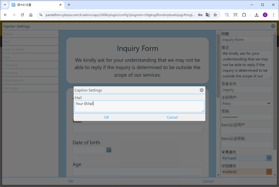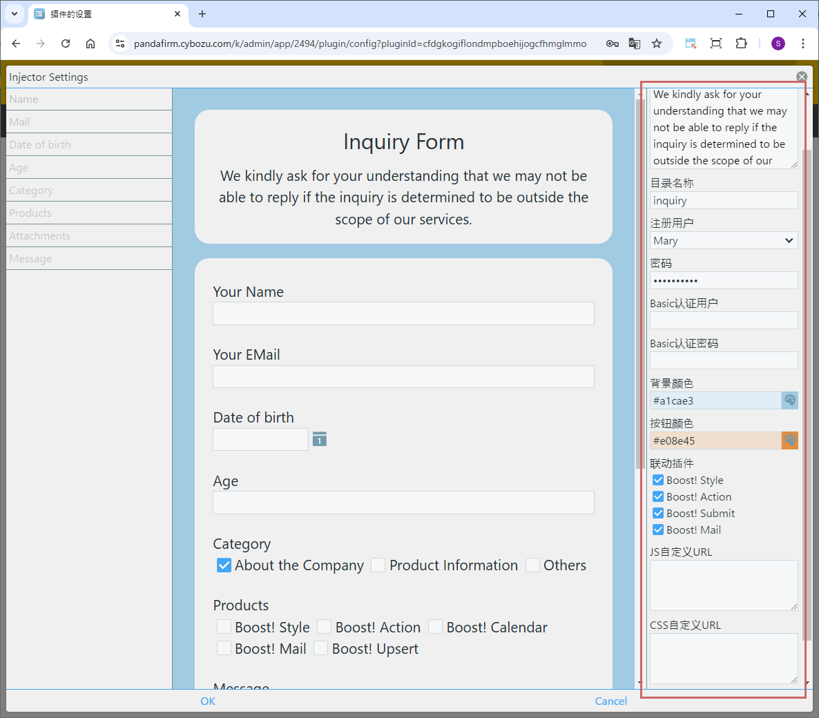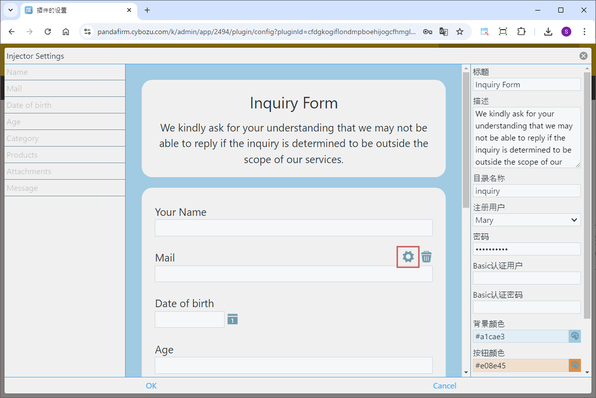 这是一个用于配置与 kintone 集成的网页表单的插件。