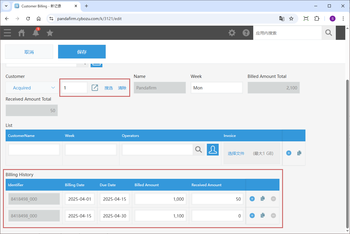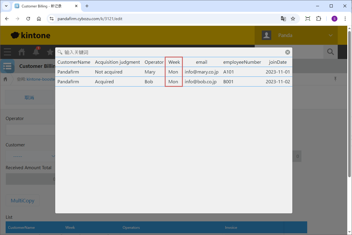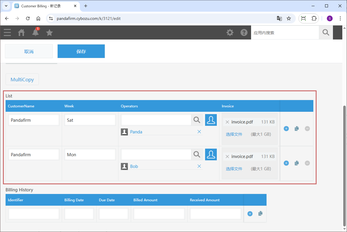 启用“表格复制”设置后,通过查找获取的记录中的表格数据将被复制到表格中。