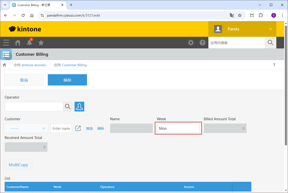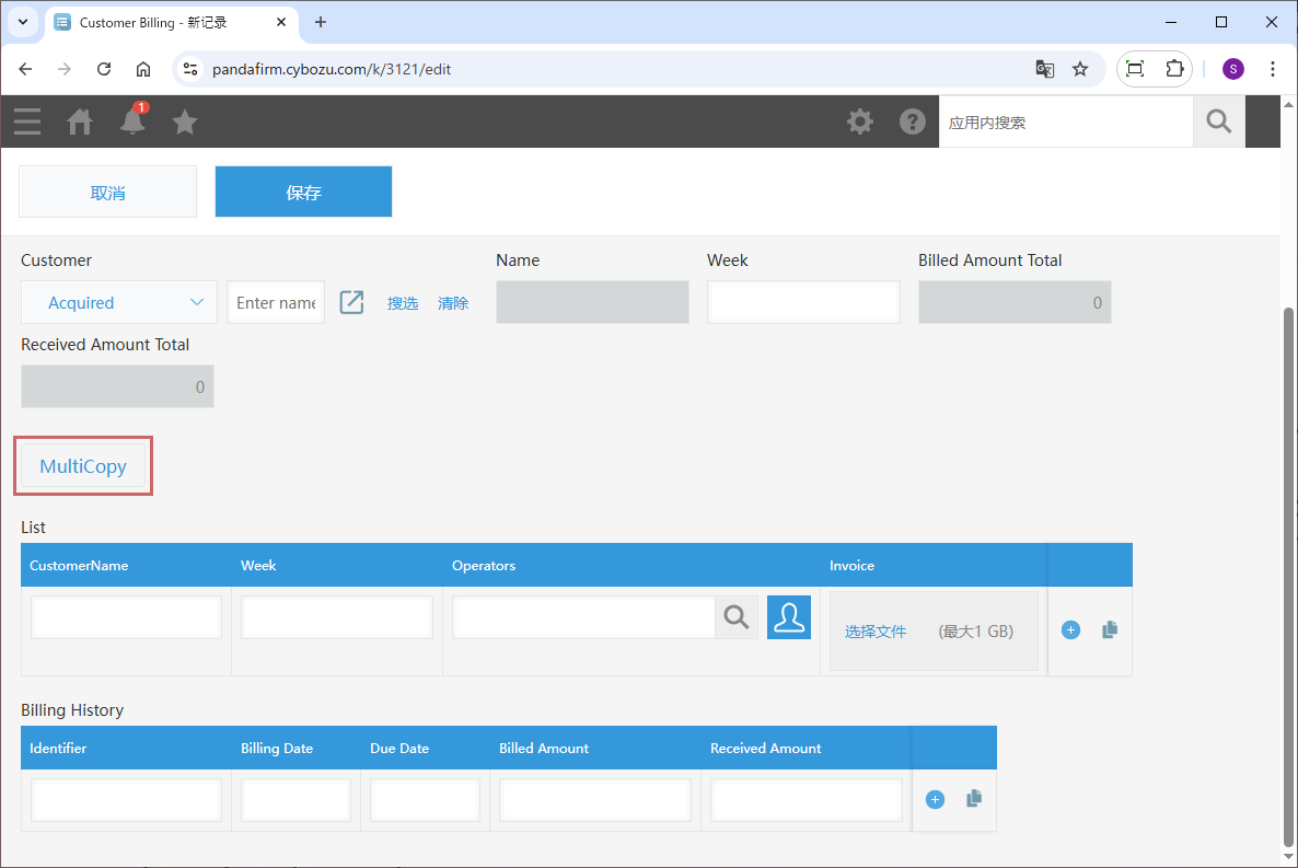 点击该按钮后,会显示一个用于选择要复制的记录的画面。选择完要复制的记录后,将其复制到表格中。