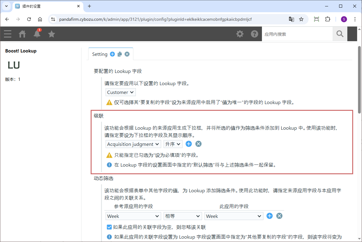 仅可选择其“要复制的字段”设为来源应用中启用了“值为唯一”的字段的 Lookup 字段。