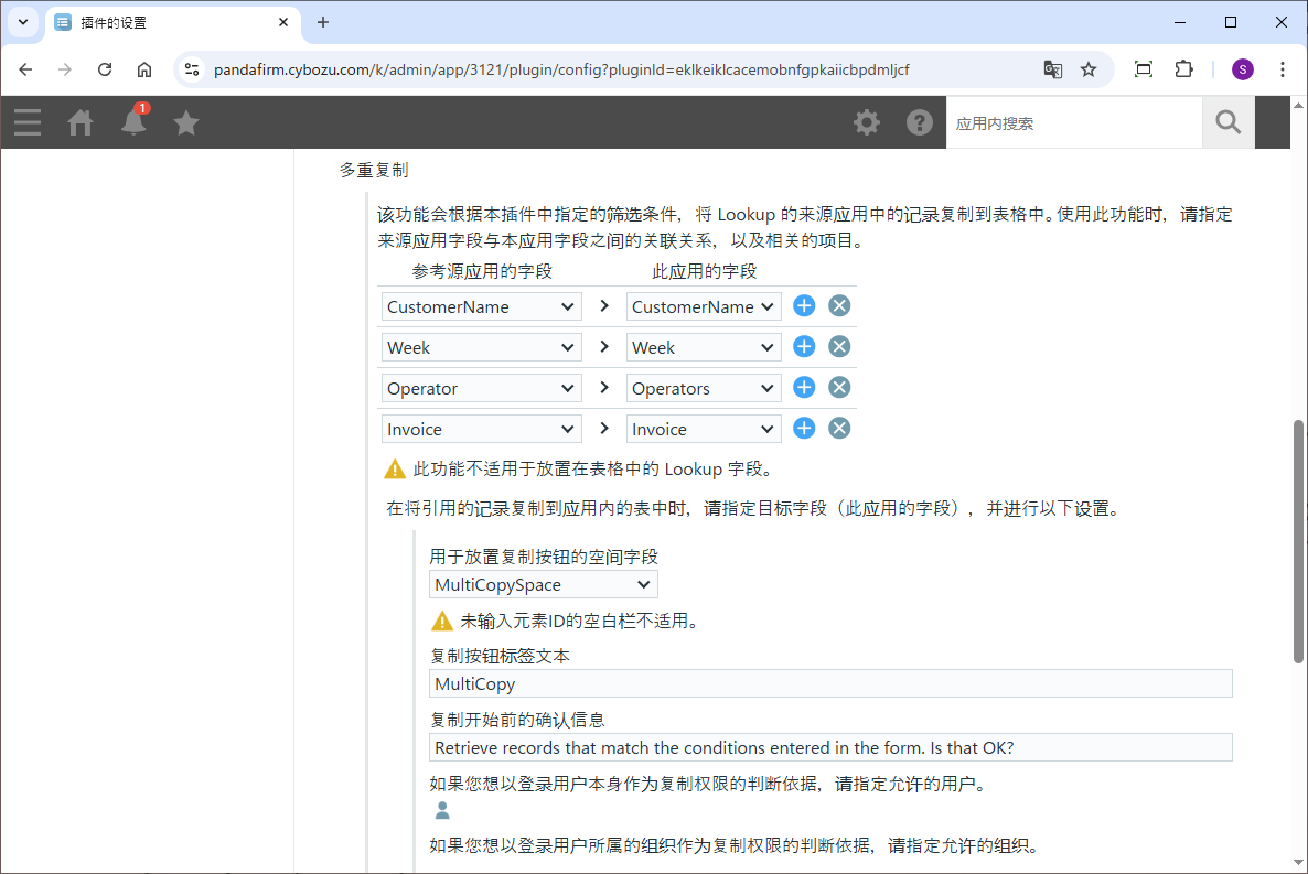 如果希望将符合本插件指定筛选条件的来源应用记录复制到表格中,请在“多重复制”栏中进行设置。