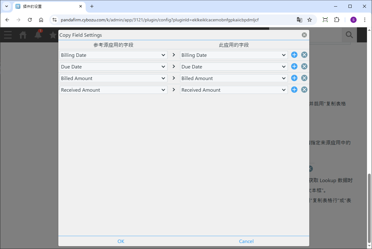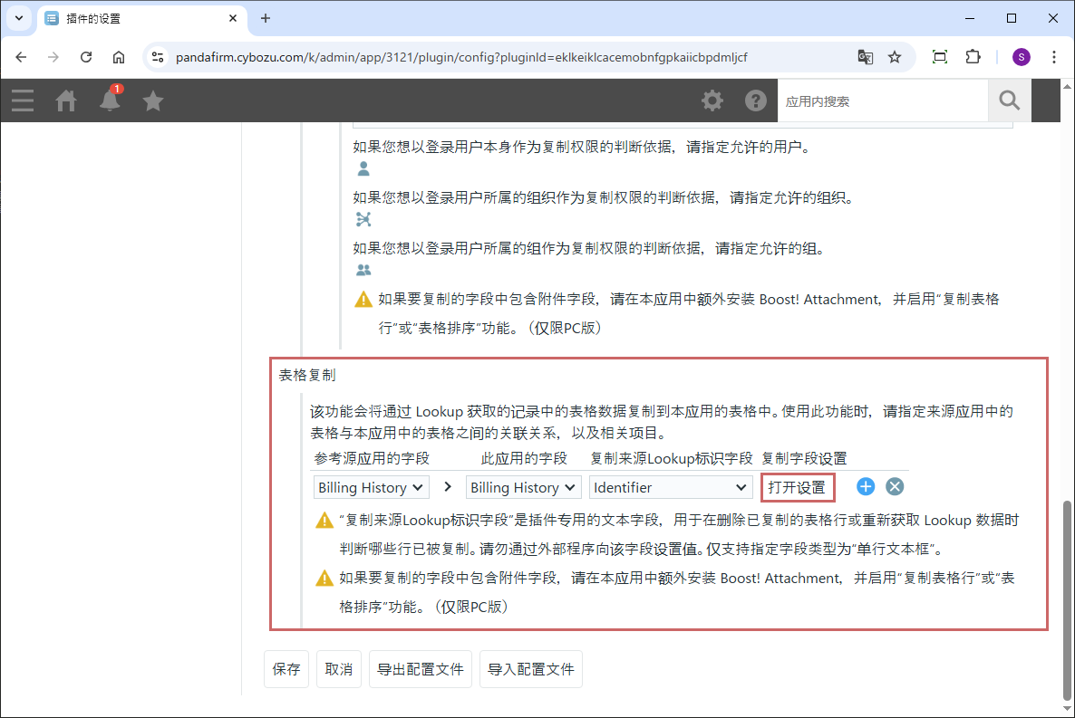 要复制字段的映射可在点击“打开设置”按钮后显示的表单中进行。