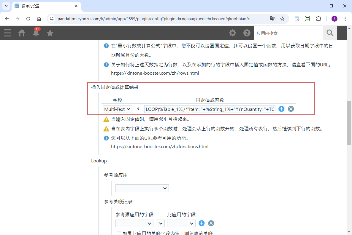 您将在Boost! Action的“插入固定值或计算结果”部分中输入使用LOOP函数的公式。